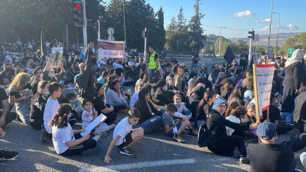 صور: تظاهرة قرب سخنين احتجاجا على تفشي الجريمة بالداخل