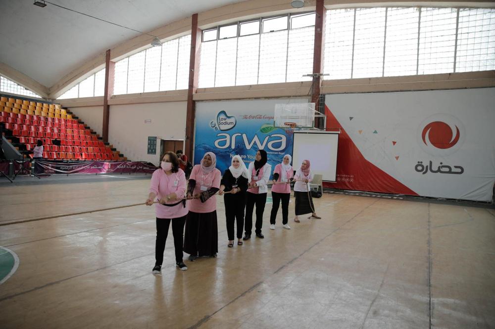 وحضر الفعالية رئيس اللجنة الأولمبية الفريق جبريل الرجوب، ومحافظ رام الله والبيرة ليلى غنام، ووزيرة الصحة مي كيلة، ورئيس بلدية مدينة رام الله موسى حديد، وبمشاركة ممثلين عن الاتحادات الرياضية والنوعية المنضوية تحت مظلة اللجنة الأولمبية، والمتعافيات من المرض وحضور عام من فئة السيدات اللواتي شاركن في أنشطة الفعالية الرياضية والترفيهية والتي تخللها حديث عن التجارب الملهمة والإرادة الصلبة في التغلب على المرض للمتعافيات.