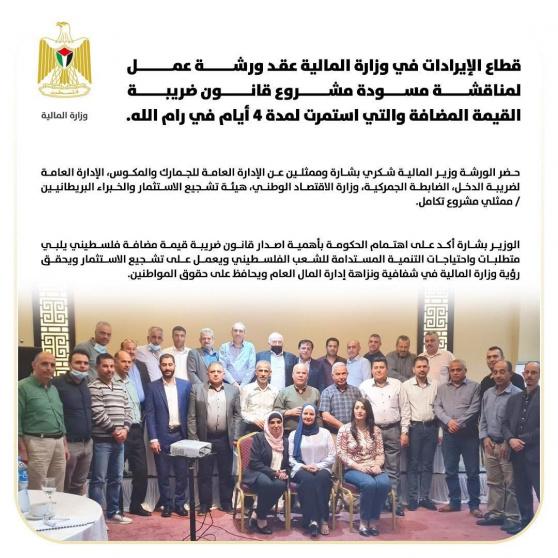 المالية: الحكومة مهتمة بإصدار قانون ضريبة قيمة مضافة فلسطيني