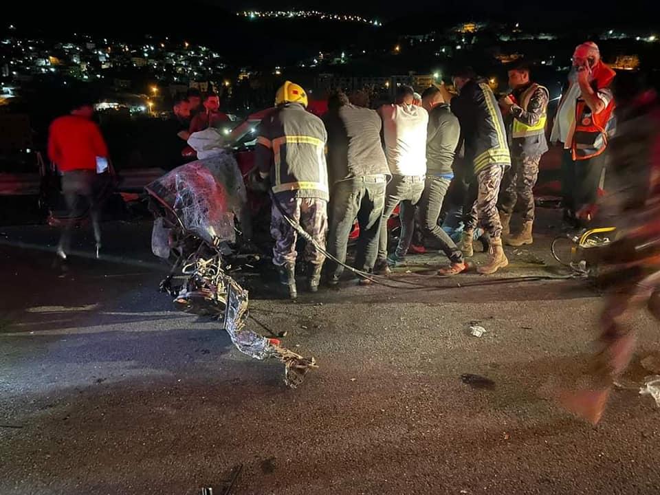 لقي أربعة مواطنين مصرعهم، وأصيب اثنين آخرين بإصابات وصفت بالبليغة، نتيجة حادث سير وقع فجر اليوم السبت على الشارع الالتفافي جنوب نابلس.