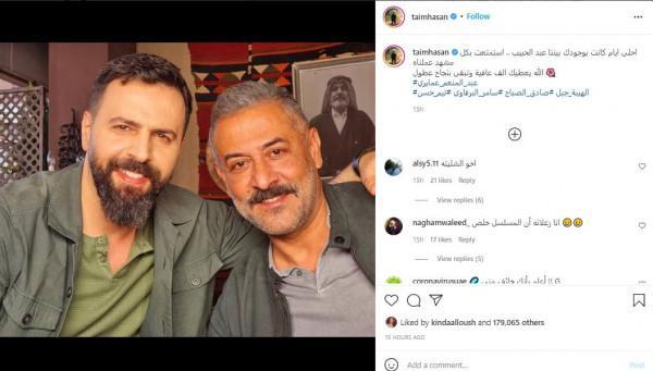 نشر الفنان السوري تيم حسن، بطل مسلسل الهيبة بوست على صفحته الشخصية عبر تطبيق تبادل الصور (انستغرام)، حيث ظهر برفقة الفنان عبد المنعم عمايري.