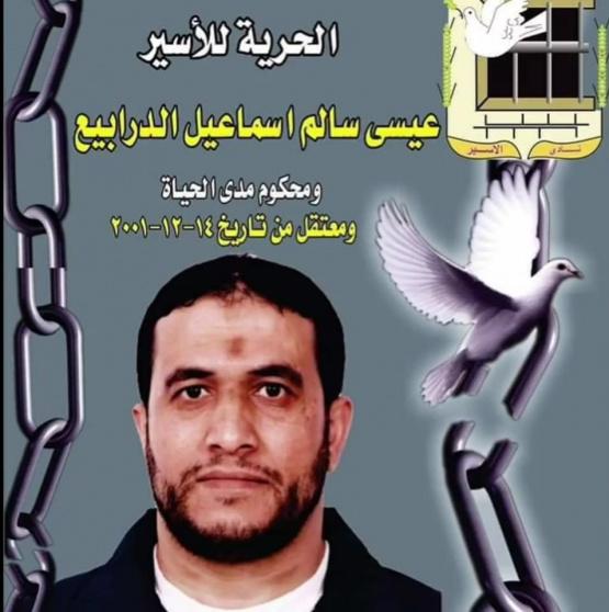 أكد الناطق الإعلامي لمؤسسة مهجة القدس للشهداء والأسرى والجرحى الأستاذ تامر الزعانين اليوم الثلاثاء؛ انضمام عميدًا جديدًا لقائمة عمداء الأسرى الفلسطينيين الذين مضى على اعتقالهم (20) عامًا متواصلة وبشكل مستمر في داخل الأسر؛ وهو الأسير عيسى سالم إسماعيل الدرابيع من بلدة دورا بمحافظة الخليل بالضفة المحتلة، والمعتقل منذ تاريخ 14/12/2001م؛ والذي حكم عليه بالسجن المؤبد (مدى الحياة) بتهمة مقاومته للمحتل.
