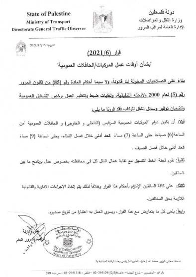 وأوضح زكارنة أن هذا القرار جاء استجابة لعديد الشكاوى من قبل المواطنين، بعدم توفر وسائل النقل على بعض الخطوط بعد الساعة الرابعة.