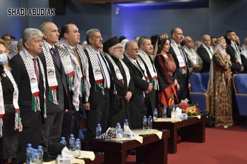 ووقف المشاركون في المهرجان لنشيد فلسطين الأبهى .. نشيد الحرية وهتافات الروح .. نشيدنا الخالد الذي يسري في دمائنا .. ليس كأي نشيد ، فنشيدنا الوطنيَ مناهضاً لدويلات سايكس بيكو ، وعدواً لملوك الطوائف ، وطوائف الملوك .