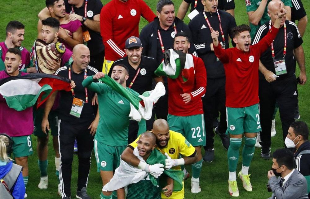 وفاز منتخب الجزائر في كأس العرب 2021 على السودان (4-0)، لبنان (2-0)، المغرب (5-3) بركلات الجزاء بعد التعادل (2-2)، قطر (2-1)، فيما تعادل أمام المنتخب المصري في ختام دور المجموعات (1-1).