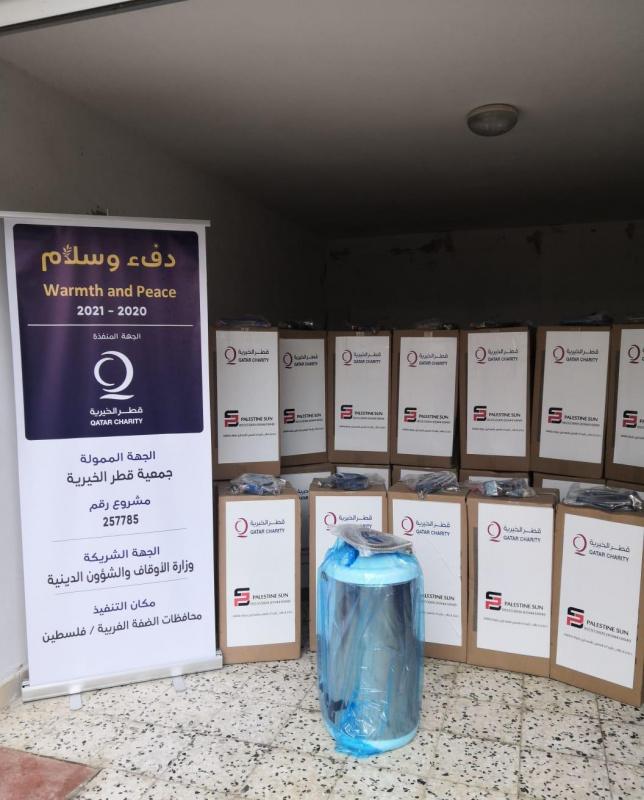 ضمن "حملة شتاء دافئ"، وبالشراكة مع وزارة الأوقاف والشؤون الدينية أنهت جمعية قطر الخيرية تنفيذ مشروع توزيع سخانات المياه "البويلرات"، ومدافئ الغاز والذي شمل محافظات عدة في الضفة الغربية.