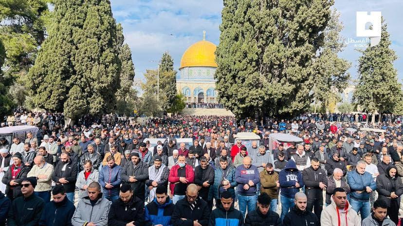 أدى نحو 50 ألف مواطن صلاة الجمعة في المسجد الأقصى المبارك، رغم الإجراءات المشددة التي فرضتها سلطات الاحتلال الإسرائيلي على أبواب ومداخل البلدة القديمة في القدس المحتلة، والتي حالت دون وصول المئات من أبناء شعبنا إليه.