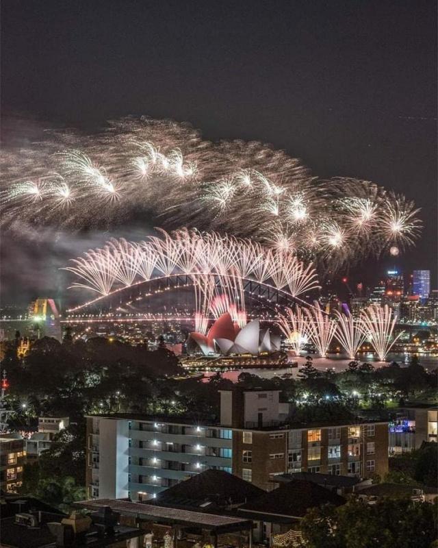 وكانت أستراليا ثاني دولة تحتفل بالعام الجديد، حيث أقامت سيدني عرضا مبهرا للألعاب النارية. وتم تزيين جسر سيدني الشهير بإضاءات الليزر ممزوجة بعشرات الآلاف من أسهم الألعاب النارية لتبهر أنظار العالم.