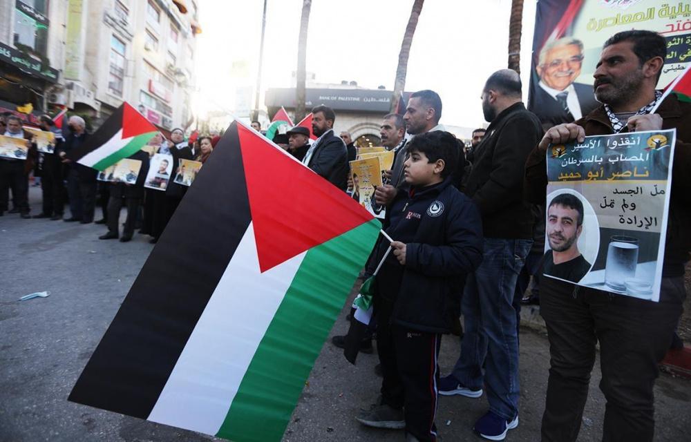 وقفة ومسيرة دعم للأسير المريض ناصر أبو حميد في رام الله