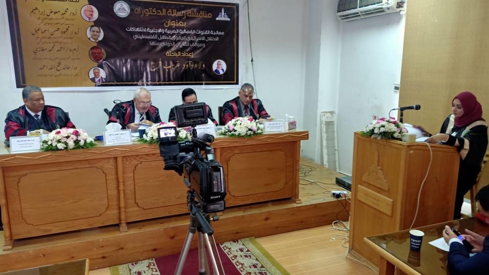 وقد كانت مناقشة علمية رائعة حسب وصف الحضور، حيث قدمت البطاط عرضاً مميزاً ملخصاً لدراستها ، فلم تتخلى البطاط في المناقشة عن دورها الاعلامي والذي من خلاله استعانت بالفيديوهات التي توثق الانتهاكات الاسرائيلية لحقوق الطفل الفلسطيني وكيفية معالجة القنوات الفضائية العربية والاجنبية لهذه الانتهاكات، وقد وصف المشرف الرئيس على الرسالة الاستاذ الدكتور محمود اسماعيل استاذ الاعلام وثقافة الاطفال الرسالة من اهم الرسائل العلمية التي قام بالإشراف عليها مؤكداً على اهمية ان يكون الباحث صاحب رسالة ويسعى الى خدمة مجتمعه كما سعت وتسعى الباحثة ولاء بطاط ، كما اكد الاستاذ الدكتور محمد معوض استاذ الاعلام وثقافة الاطفال ورئيس لجنة الحكم والمناقشة ان الدراسة عكست جهداً كبيراً وواضحاً اضافة الى اهميتها التي ستنعكس على الاعلاميين والباحثين الذين سيقومون بالاطلاع عليها فيما بعد مما تحمله من اهمية.