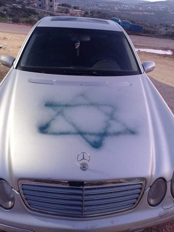 مستوطنون يعطبون إطارات مركبات ويخطون شعارات عنصرية شمال سلفيت