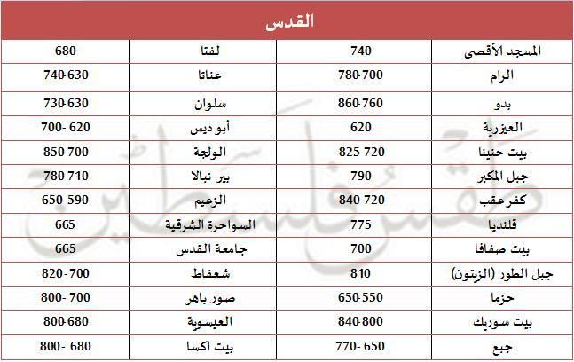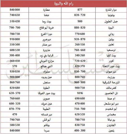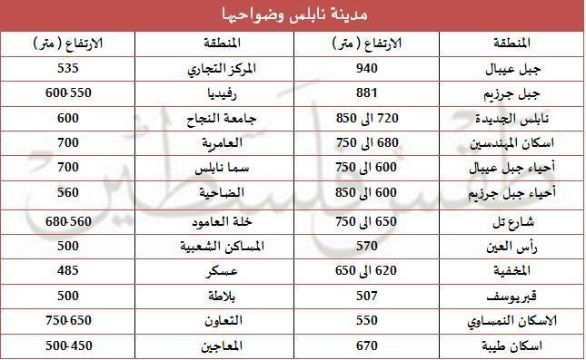 وفيما يلي ارتفاعات المناطق الفلسطينية عن سطح البحر، وفق موقع طقس فلسطين: