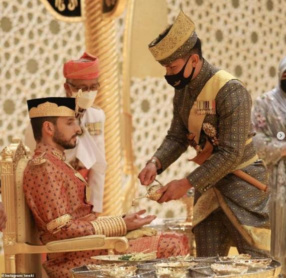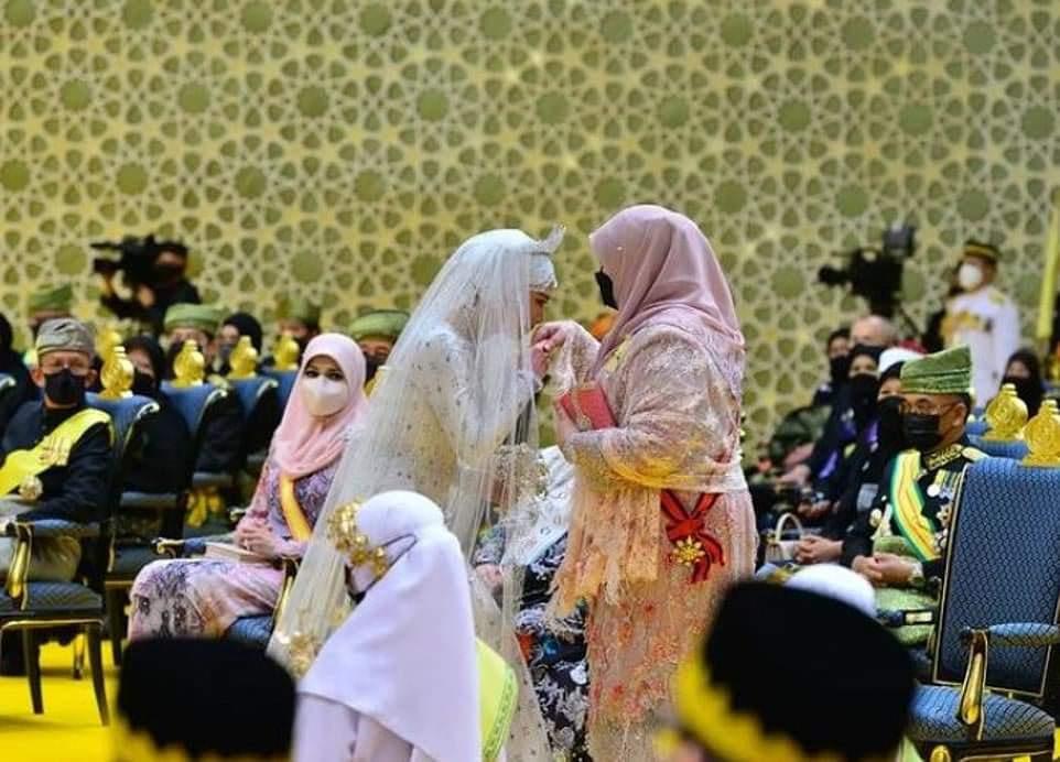 وشهد الحفل، الذي أقيم في مسجد عمر علي سيف الدين، قيام العريس بإعلان نذوره أمام مجموعة من الحاضرين من الرجال فقط، بمن فيهم السلطان، الذي قام بدور ممثل ابنته في حفل الزفاف. وشهد الاحتفال 17 طلقة تحية.