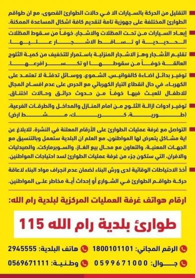 أرقام هواتف غرفة العمليات المركزية لبلدية رام الله: