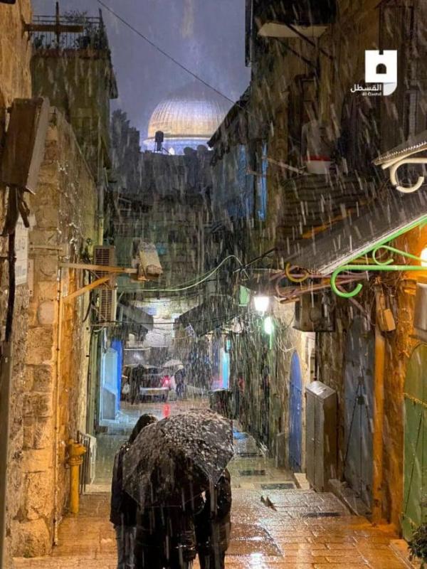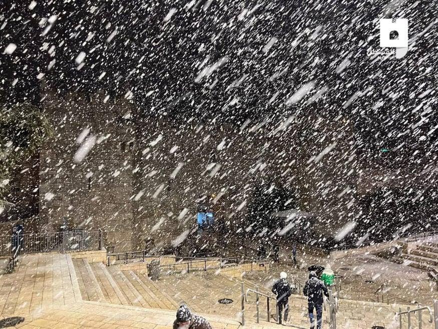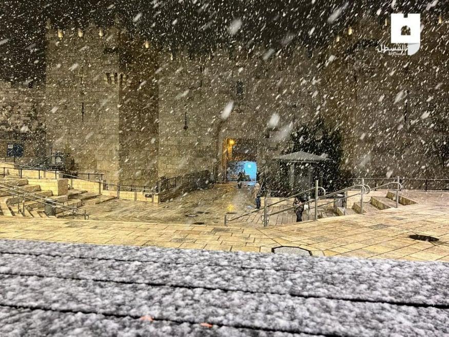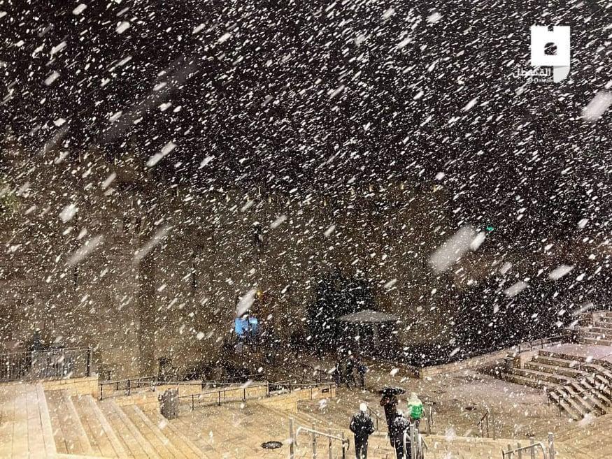 وأظهرت مقاطع فيديو تم تداولها على مواقع التواصل الاجتماعي، تساقط الثلوج في مدينة رام الله، والخليل وبيت لحم والقدس.