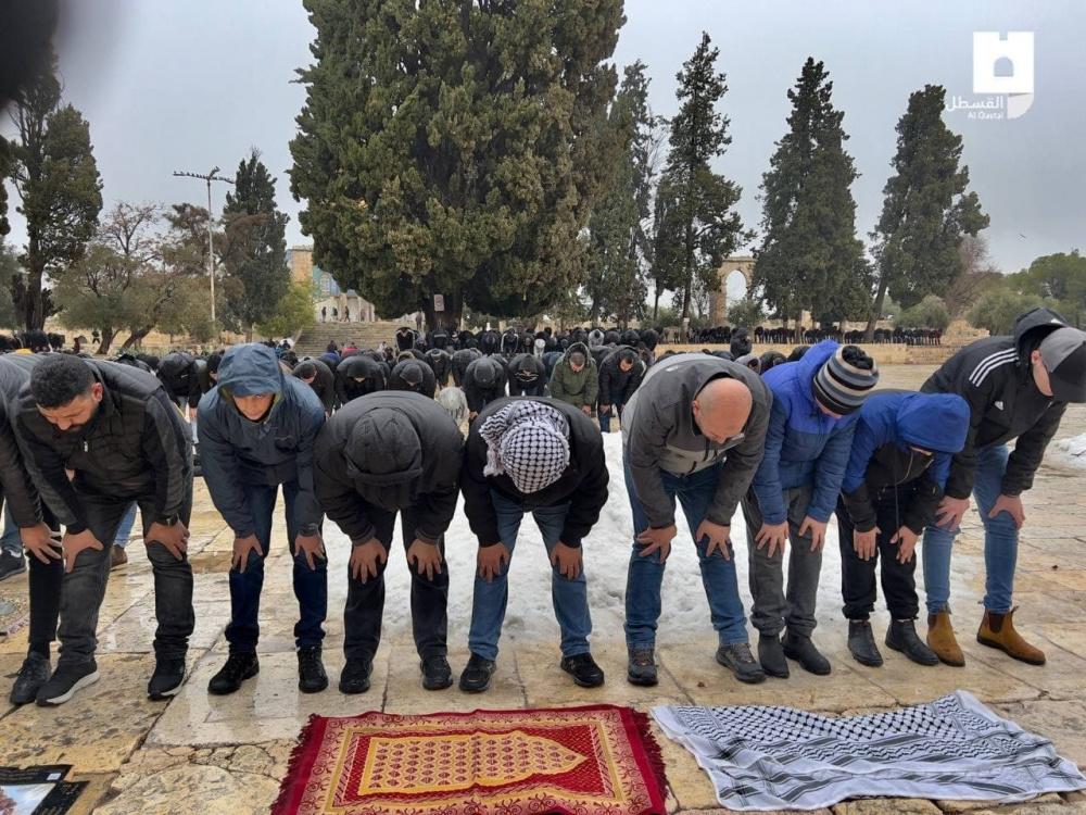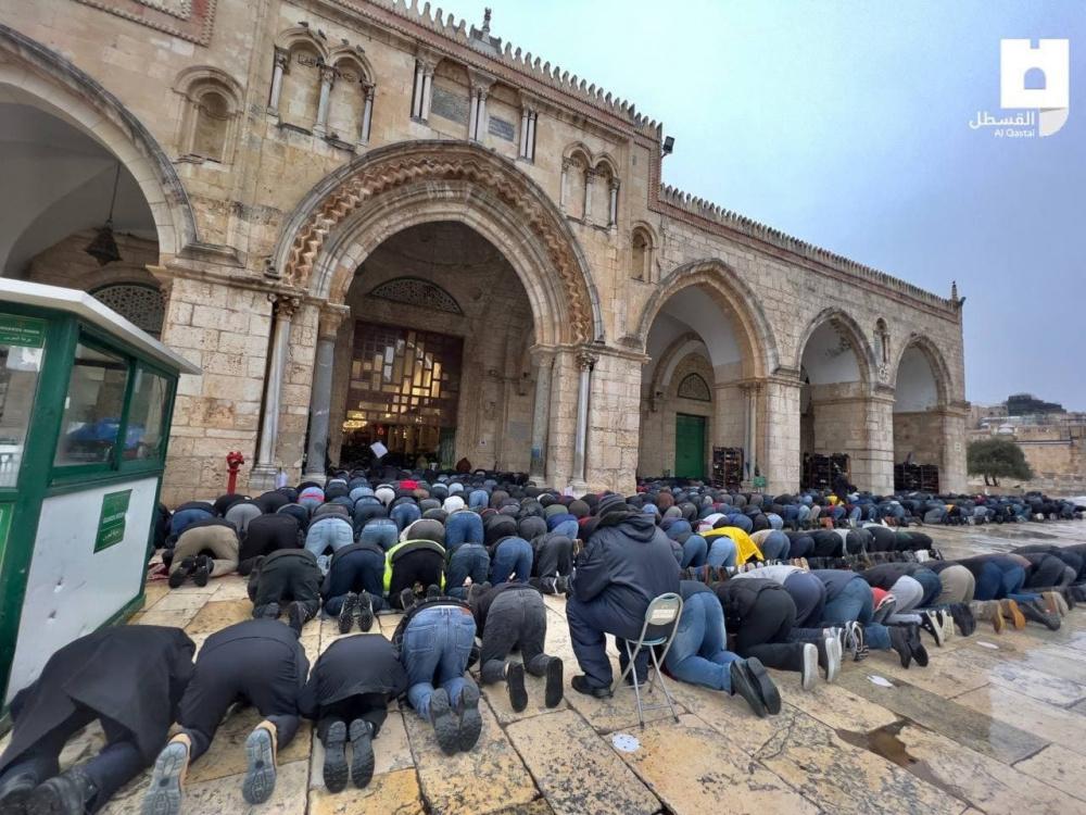 وشهد المسجد الأقصى احتشاد آلاف المواطنين من القدس والضفة الغربية وداخل أراضي عام 1948، لأداء الصلاة رغم الأجواء الباردة والماطرة، لإيصال رسالة للاحتلال برفض مخططاته التهويدية التي ينفذها في الأقصى، وللتأكيد على إسلاميته وضرورة شد الرحال إليه.
