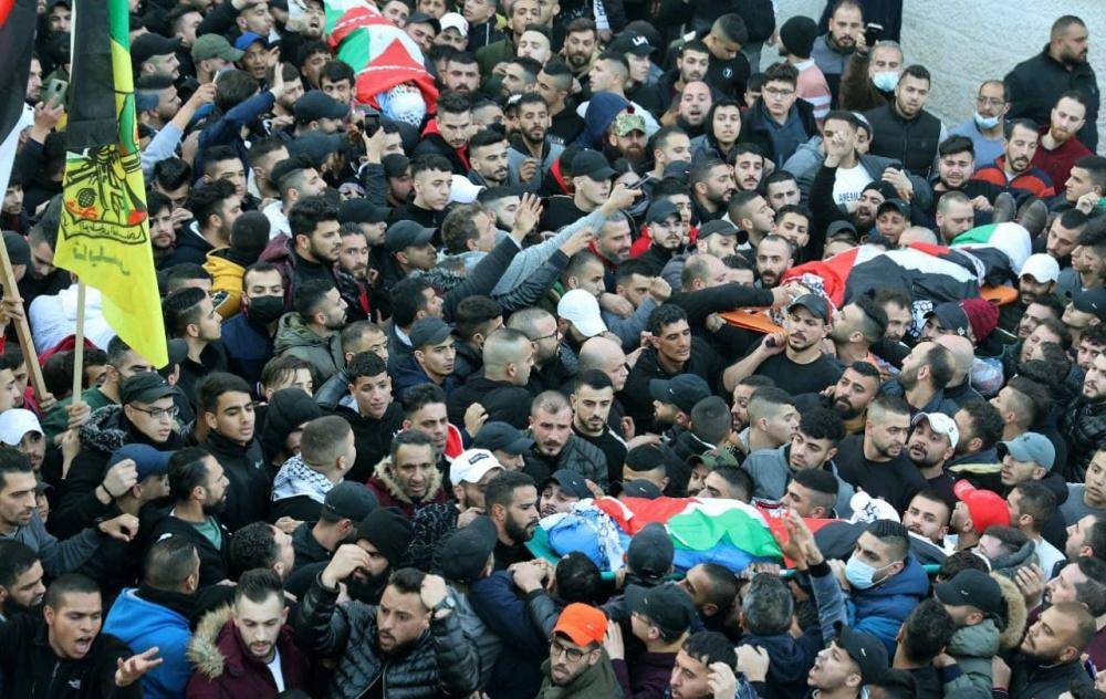 شيع الآلاف من المواطنين مساء يوم الثلاثاء، جثامين الشهداء الثلاثة، الذين ارتقوا برصاص الاحتلال في حي المخفية بمدينة نابلس، تزامناً مع اضراب شامل شهدته المدينة.