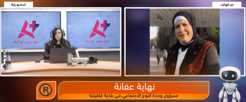 الناشطة عفانة تحدثت لبرنامج (A+) عبر (رايــة) عن جهودها منذ أن كانت ناشطة مجتمعية حتى صارت مسؤولة وحدة النوع الاجتماعي ورئيس المنتدى النسوي البيئي في بلدية قلقيلية.