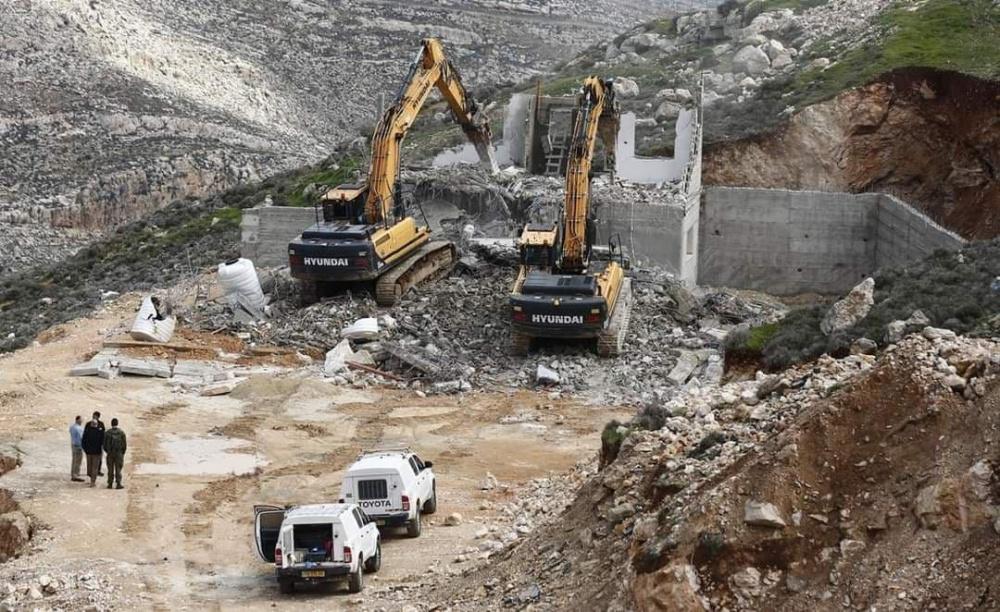 هدمت قوات الاحتلال الإسرائيلي اليوم الإثنين، منزلا قيد الإنشاء في حي سطح مرحبا بمدينة البيرة.