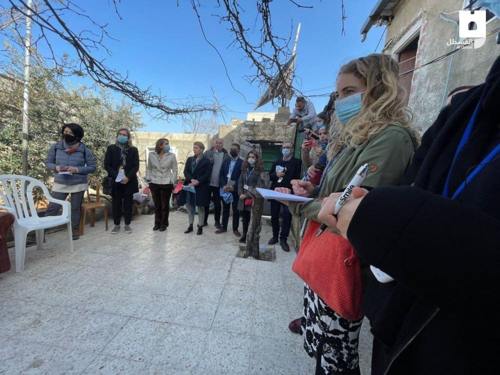 واستمع الوفد إلى تفاصيل المعاناة اليومية التي تعيشها عائلة سالم والعائلات الأخرى، في ظل التهديد بإخلائها قسرا من منازلها وفي ظل اعتداءات واستفزازات المستوطنين اليومية تحت حماية قوات الاحتلال التي لا يقتصر دورها على حماية المعتدين، بل وتشارك في هذه الاعتداءات أيضا.