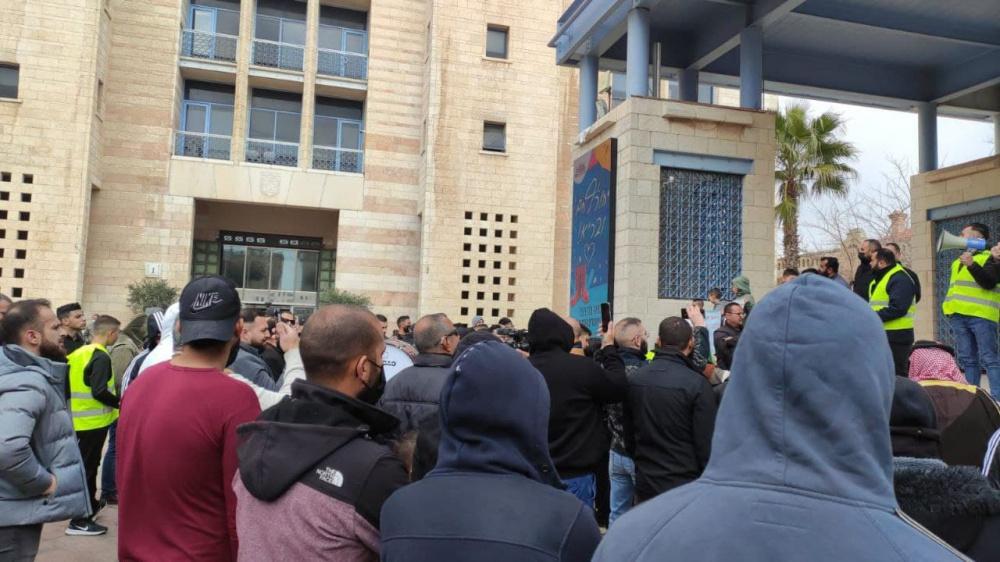 نظم العشرات من أهالي جبل المكبر والمقدسيين، اليوم الأحد، وقفة احتجاجية أمام مبنى بلدية الاحتلال في مدينة القدس المحتلة، احتجاجا على سياسة هدم المنازل والمنشآت المقدسية.