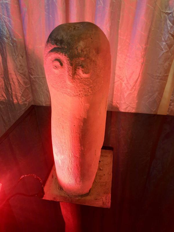 وتتكون المنشأة من حجرين منصوبين يحويان تمثيلات مجسّمة بشرية، أطولها (بارتفاع 1،12 مترًا) ويحمل رسما لمصيدة حجرية ممزوجة بوجه بشري، ويعرض الحجر الثاني (ارتفاعه 70 سم) شكل رأس إنسان بتفاصيل منحوتة بدقة، وخلف هذين الحجرين تمّ اكتشاف الكثير من اللُقى الأثريّة، وهذه اللقى تتألف من 149 متحجرة بحريّة، تمّ ترتيب العديد منها بعناية ووضعها عمودياً واتباع اتجاه معين، إلى جانب مجموعة متنوعة من الأحجار ذات الأشكال الطبيعيّة غير العاديّة، بالإضافة إلى عدد من الأدوات المصنّعة غير الشائعة، بما في ذلك الدمى الحيوانيّة والأدوات الصوانيّة الاستثنائيّة، وتمّ ترتيب جميع هذه اللُقى الأثريّة بالإضافة إلى مذبح طقسيّ حجريّ مع موقد مرافق له داخل نموذج معماريّ مصغّر لمصيدة "طائرة ورقية" بُني وسط موقع المخيم.