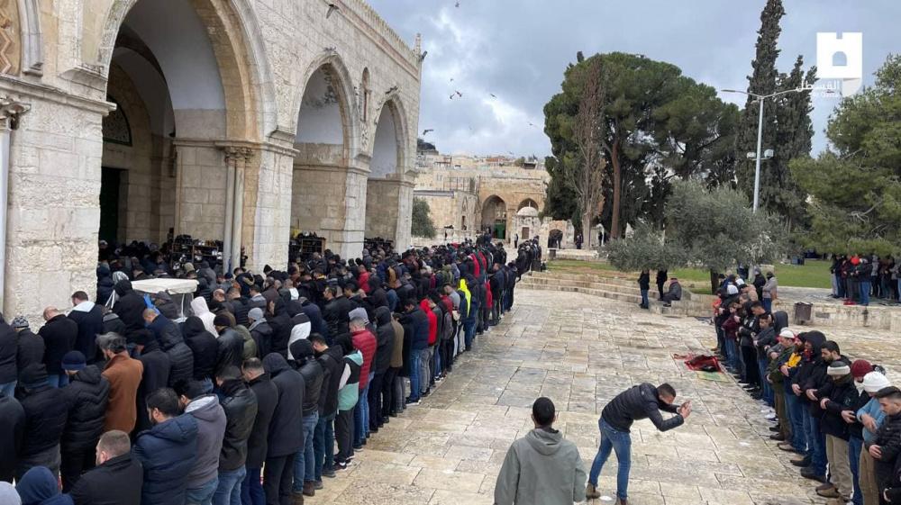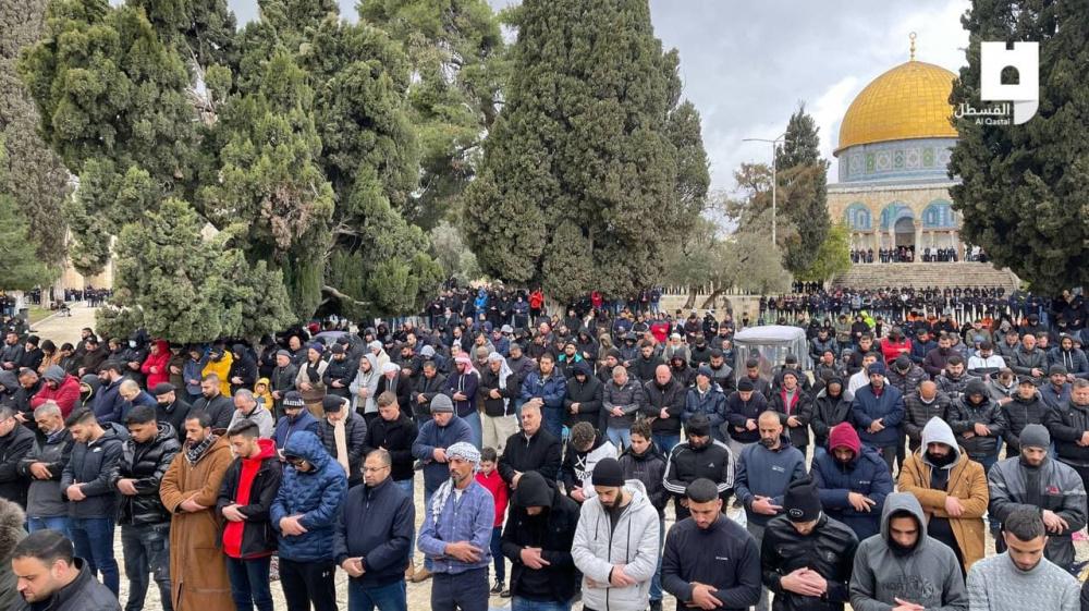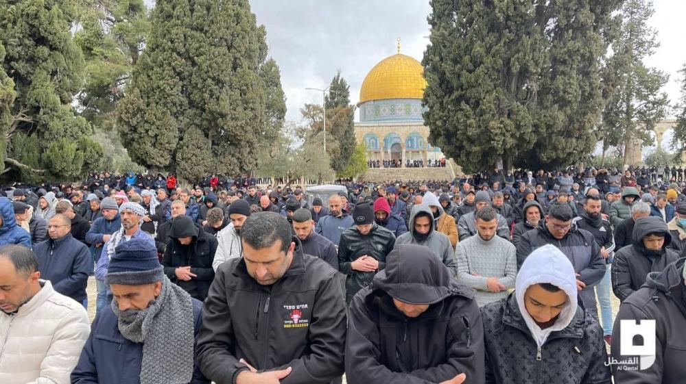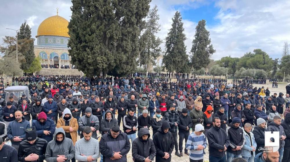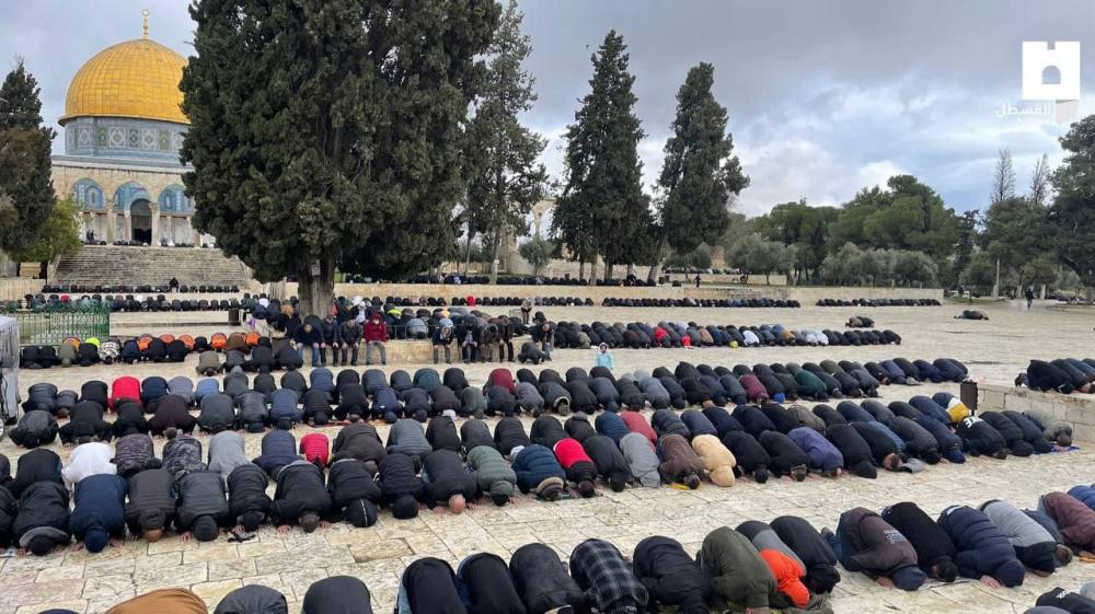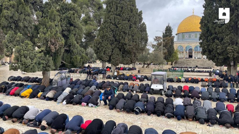 وكان آلاف المصلين أدوا صلاة الفجر في المسجد الأقصى المبارك، رغم قيود الاحتلال الإسرائيلي وتشديداته.