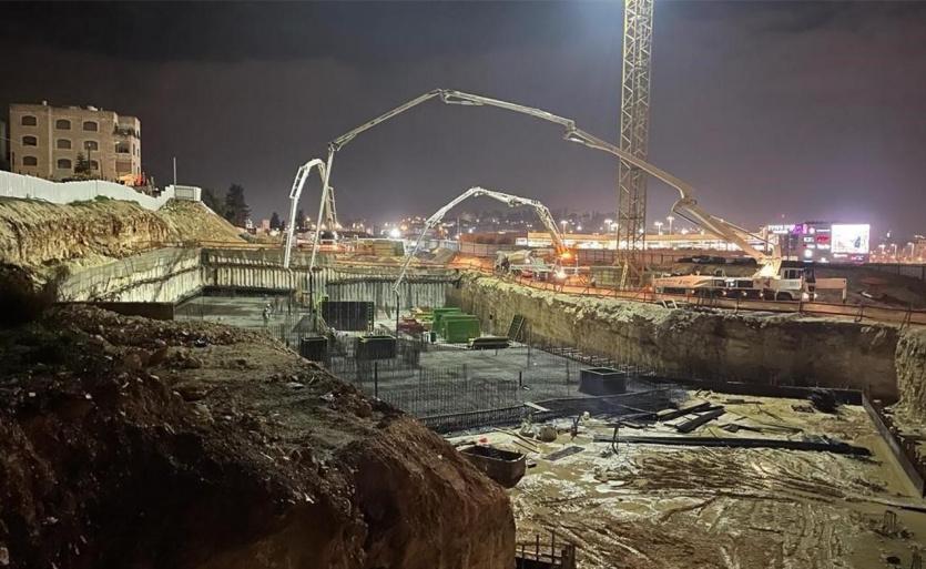 صبة خرسانة متواصلة لأكثر من 20 ساعة في حي "لنا القدس"