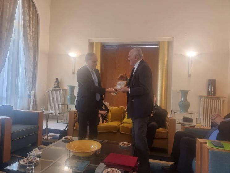 وضم الوفد أيضاً الأستاذ الدكتور عماد أبو كشك رئيس جامعة القدس والسفيرة السابقة هند حوري وعضو هيئة العمل الوطني والأهلي راسم عبيدات والمدير التنفيذي لصندوق ووقفية القدس طاهر الديسي ورئيس مجلس إدارة مؤسسة “منيب وانجلا المصري” دينا منيب المصري.