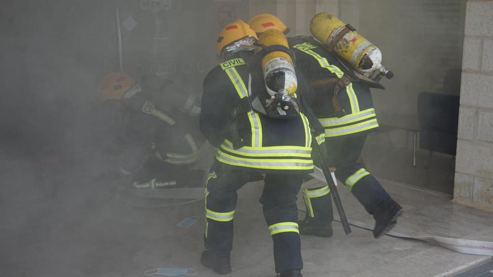 نفذ الدفاع المدني الفلسطيني، اليوم الاربعاء، "تمرين تعبوي" يحاكي وقوع عدد من الأحداث في نفس الوقت في حي المصيون بمحافظة رام الله.