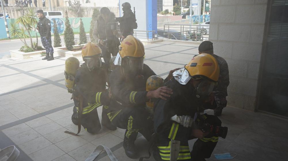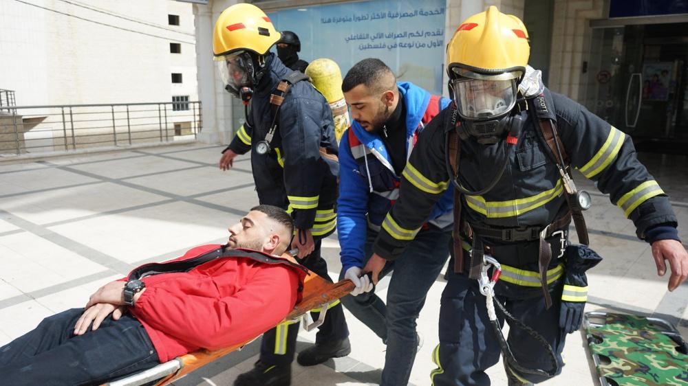 يشار إلى أن هذا التمرين نفذ في اختتام فعاليات اليوم العالمي للدفاع المدني بالشراكة مع الشرطة والخدمات الطبية والهلال الأحمر وشركة كهرباء القدس والمتطوعين وفرق السلامة العامة في البنوك المذكورة.
