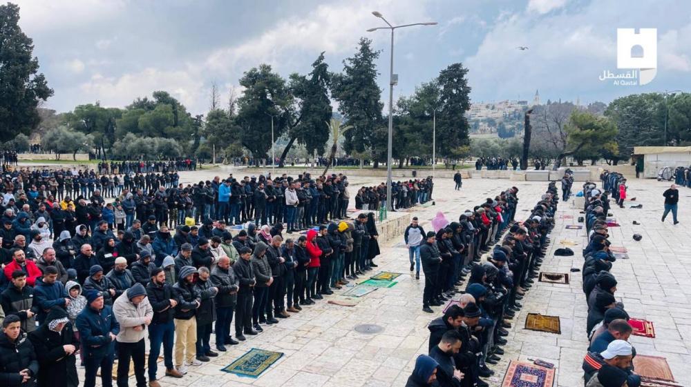 وكان آلاف المصلين أدوا صلاة الفجر في المسجد الأقصى، رغم قيود الاحتلال وتشديداته.