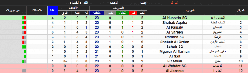 جدول ترتيب الدوري الأردني للمحترفين 2022