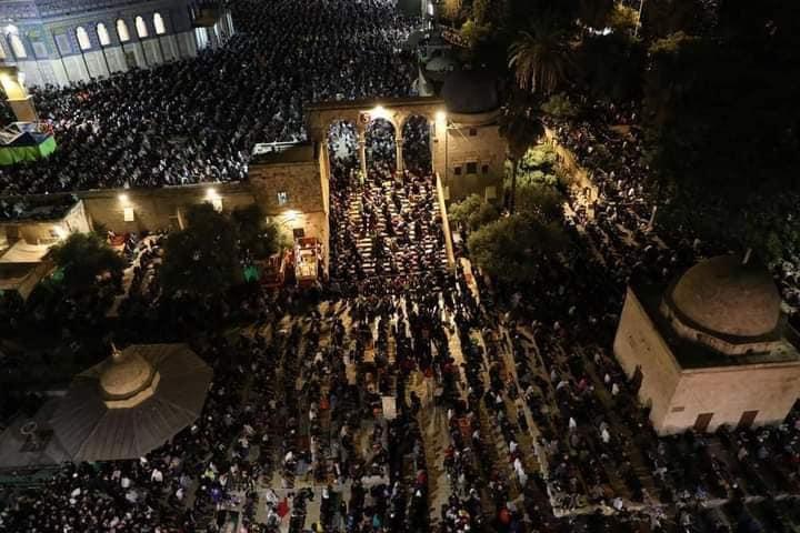 وأفادت مصادر صحفية بأن باحات ومصليات الأقصى اكتظت بالمصلين الذين جاءوا من مدينة القدس ومن أراضي الـ 48، وممن تمكنوا من الوصول من الضفة، تحدوا قيود الاحتلال وحواجزه لإحياء ليلة القدر.