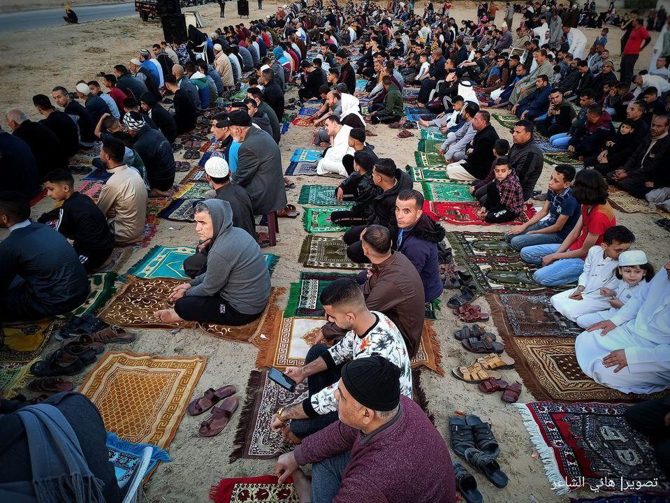 بالصور: مواطنو غزة يؤدون صلاة عيد الفطر في العراء والساحات العامة