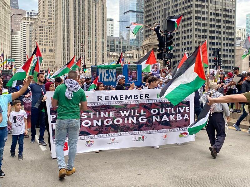 الجالية الفلسطينية في شيكاغو تحيي ذكرى النكبة وتندد باغتيال أبو عاقلة