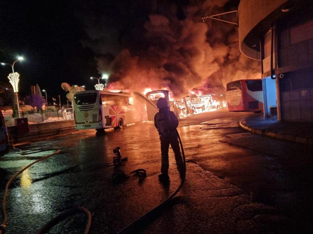 احترقت 18 حافلة تابعة لشركة "نتيفي إكسبرس" بالكامل، بعد اندلاع نيران ضخمة فيها فجر اليوم السبت، في ساحة انتظار بالمحطة المركزية في صفد.