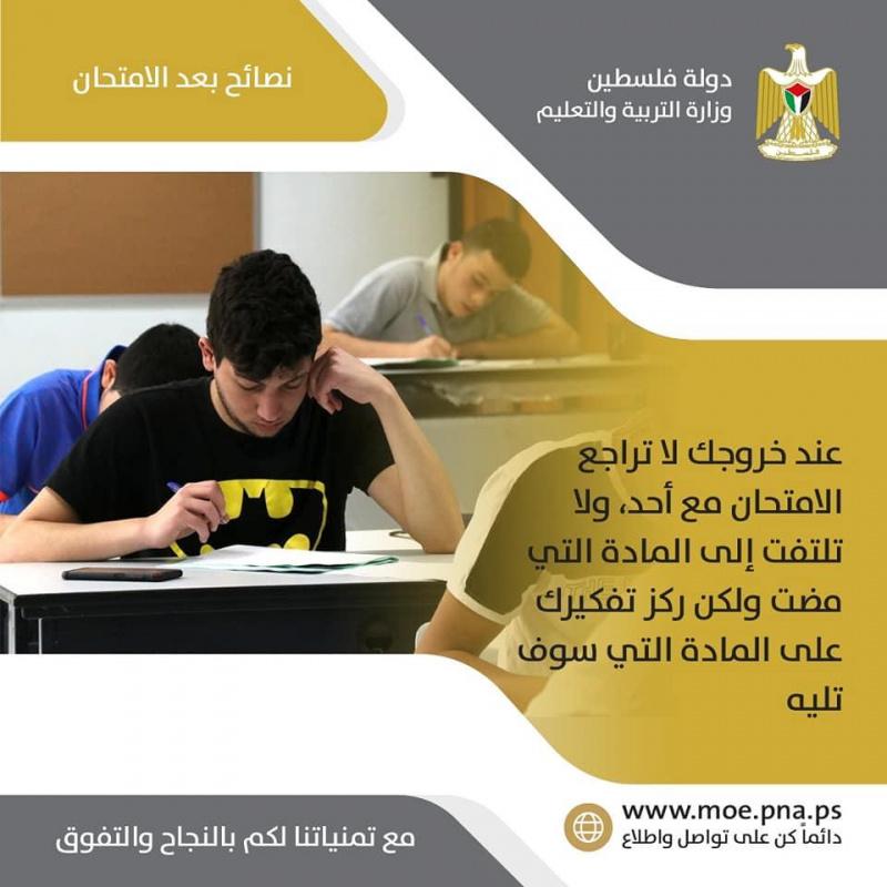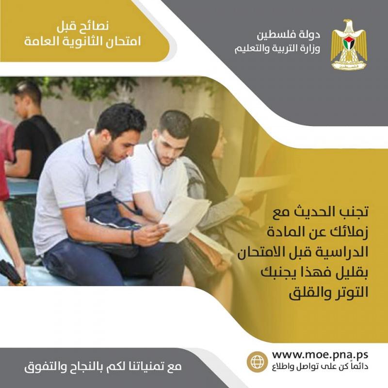 وفيما يلي نصائح لطلبة الثانوية العامة التوجيهي: