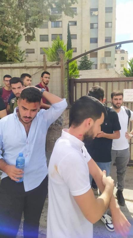 وأصيب عددا من الطلبة بجروح مختلفة، حيث أظهرت المقاطع المصورة بعض الطلبة وهم ملقون على الارض، وبعضهم ينزف منه الدماء ويحتاج الى اسعاف.