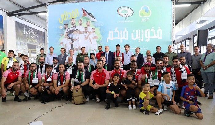وكان في استقبال المنتخب في مدينة أريحا رئيس الاتحاد الفلسطيني لكرة القدم الفريق جبريل الرجوب، وعدد من أعضاء المكتب التنفيذي للاتحاد، وعدد من الشخصيات الرسمية والاعتبارية، وحشد من جماهير "الفدائي".