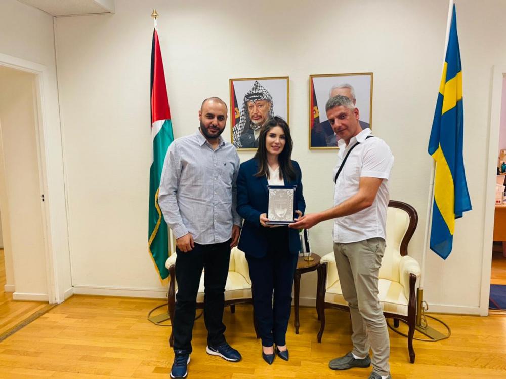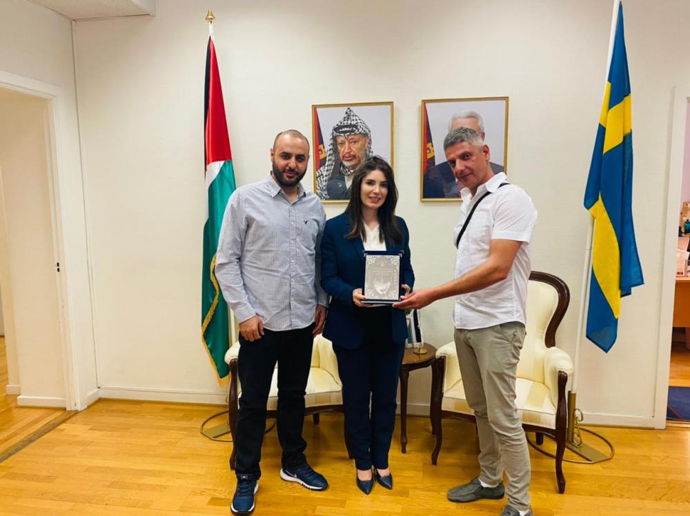 استقبلت سفيرة دولة فلسطين في مملكة السويد رولا محيسن، وفد هيئة شؤون الأسرى والمحررين المتواجد حالياً هناك، والذي يضم رئيس وحدة العلاقات الدولية رائد أبو الحمص ومدير الإعلام ثائر شريتح، للمشاركة في عدد من النشاطات والفعاليات.
