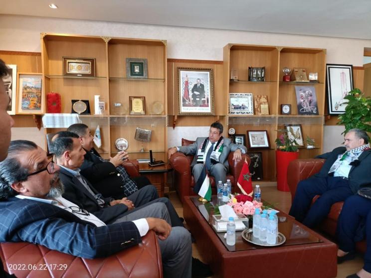 والتقى الوفد الفلسطيني برئاسة اللواء بلال النتشة، الأمين العام للمؤتر، أمس الأربعاء، عُمدة المدينة الدكتور عبد السلام البقالي، الذي كان مرفوقا بنواب المدينة في البرلمان، وأعضاء الائتلاف الحزبي المشكل للمجلس من كافة الأطياف السياسية.