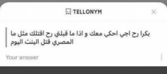 وفي التفاصيل، جرى تداول صورة لرسالة هاتفية تخص الجاني، يظهر فيها تهديد بالقتل، حيث أرسلها إلى المجني عليها قبل يوم من الجريمة، مهددا إياها بملاقاة نفس مصير الفتاة المصرية نيرة أشرف على يد زميلها في الجامعة.