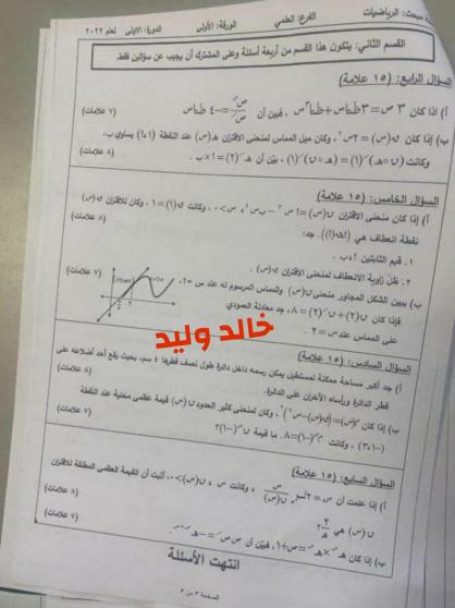 إجابات امتحان الرياضيات الورقة الأولى للثانوية العامة 2022: