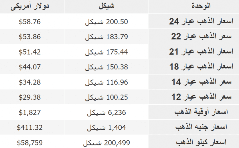 أسعار الذهب في أسواق فلسطين اليوم الأحد