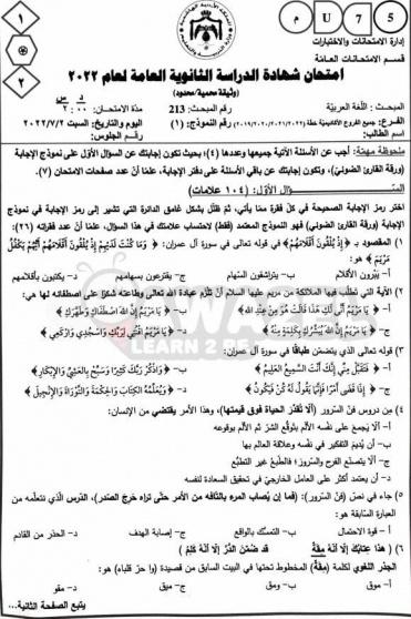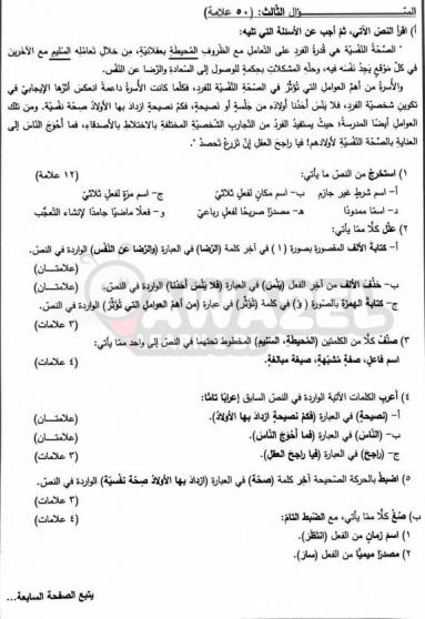 حل امتحان اللغة العربية توجيهي الأردن 2022: