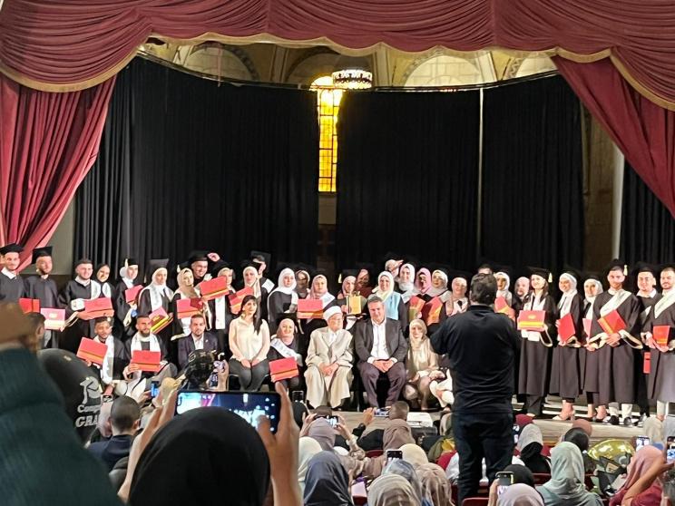 جاء ذلك خلال احتفال كلية الشهاب المقدسي ، بتخريج الفوج الخامس "الحرية والكرامة " من طلبتها من تخصصات دبلوم هندسة ديكور تصميم داخلي ودبلوم محاسبة عامة ودبلوم حضانة طفل بحضور مجلس الأمناء وعدد من الشخصيات المقدسية والمدرسين وأهالي الطلبة.