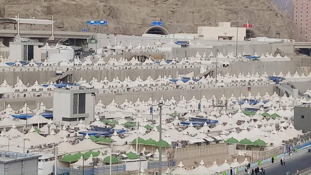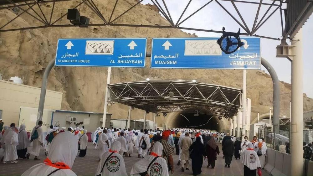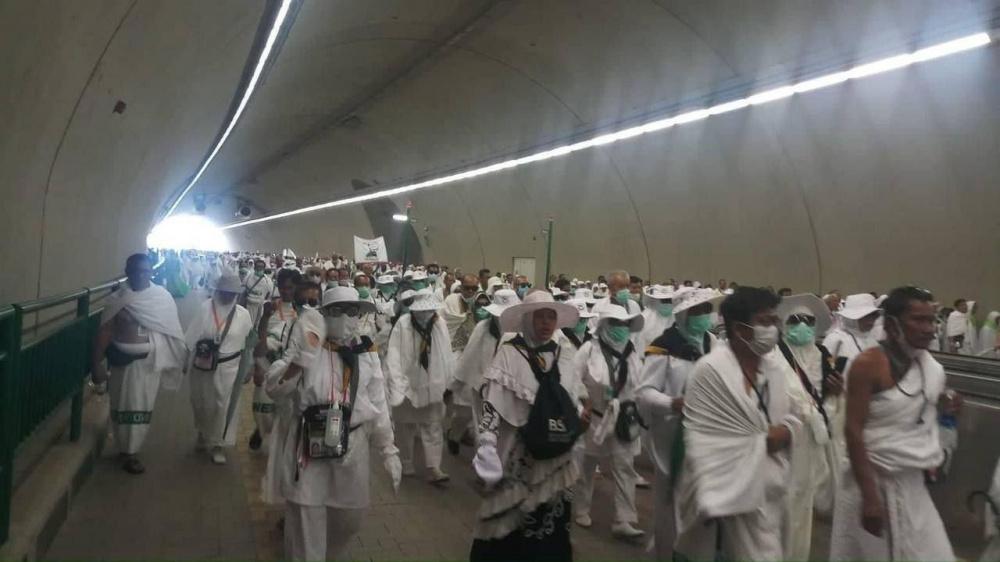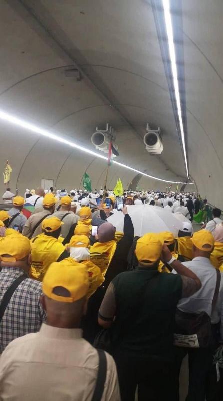توافد حجاج فلسطين الى مشعر منى، اليوم السبت، اول ايام عيد الأضحى المبارك، لرمي جمرة العقبة الكبرى.