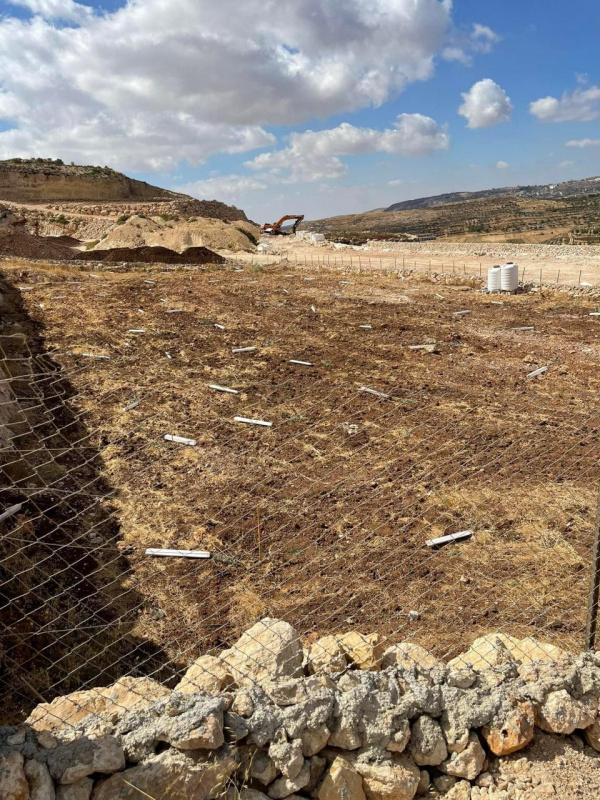 اقتلع مستوطنون، اليوم الاثنين، 450 شجرة في منطقة السهل، الواقعة بين أراضي ترمسعيا والمغير، شمال شرق مدينة رام الله.