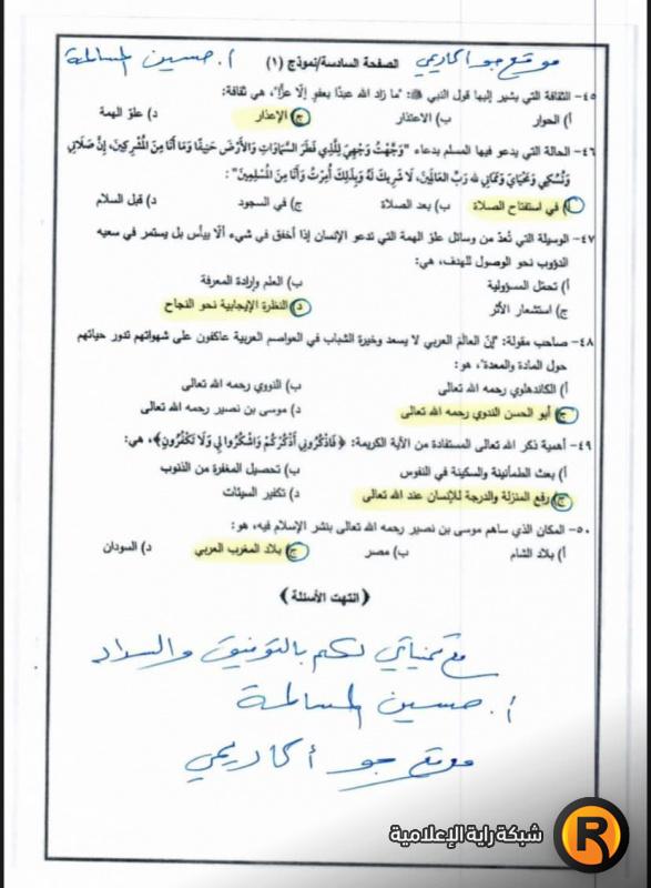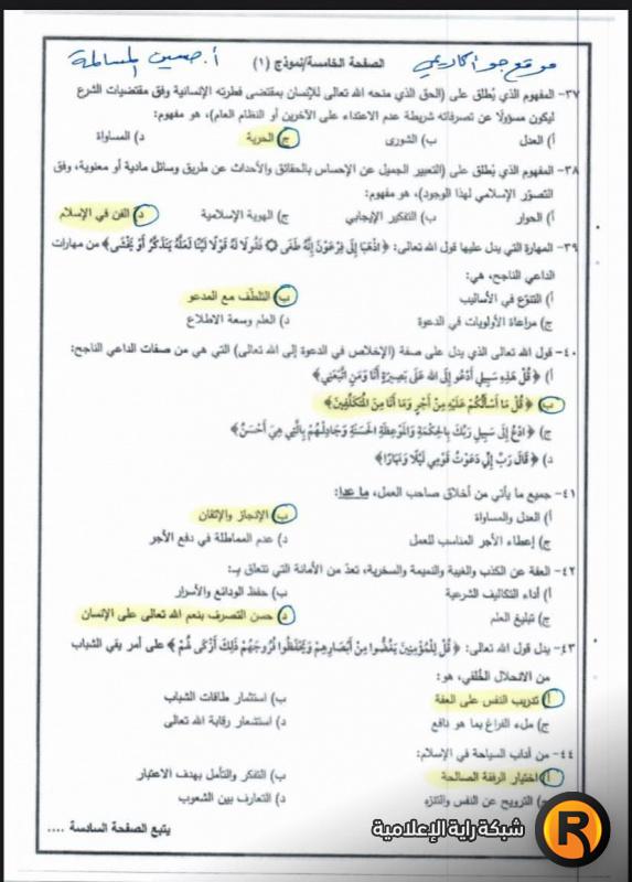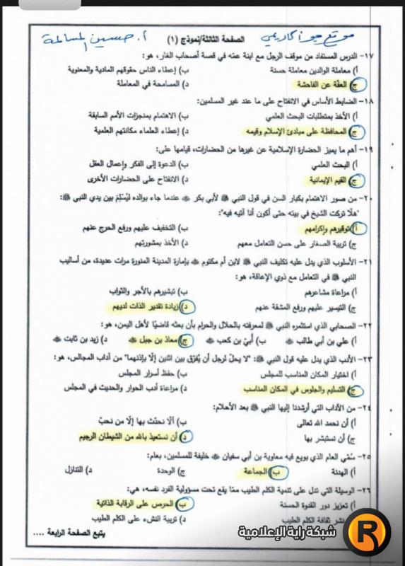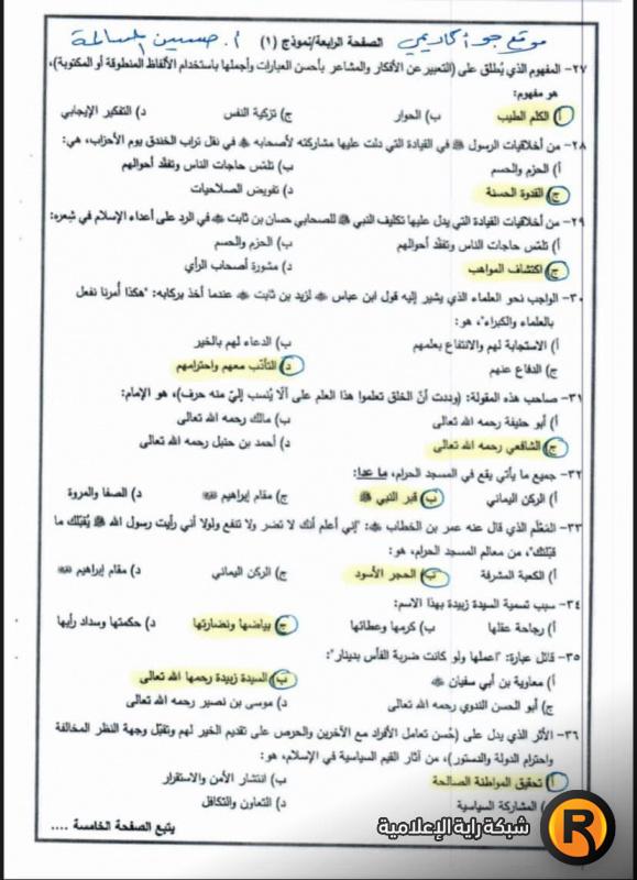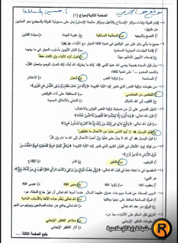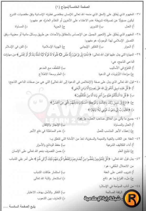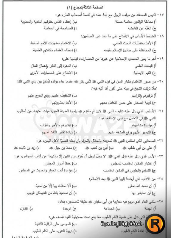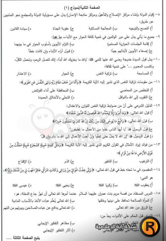 ونشر موقع الأوائل عبر موقع التواصل الاجتماعي فيسبوك مجموعة من أسئلة العلوم الإسلامية المتوقعة في هذا العام ونماذج من اختبارات السنوات الماضية في هذا المبحث.